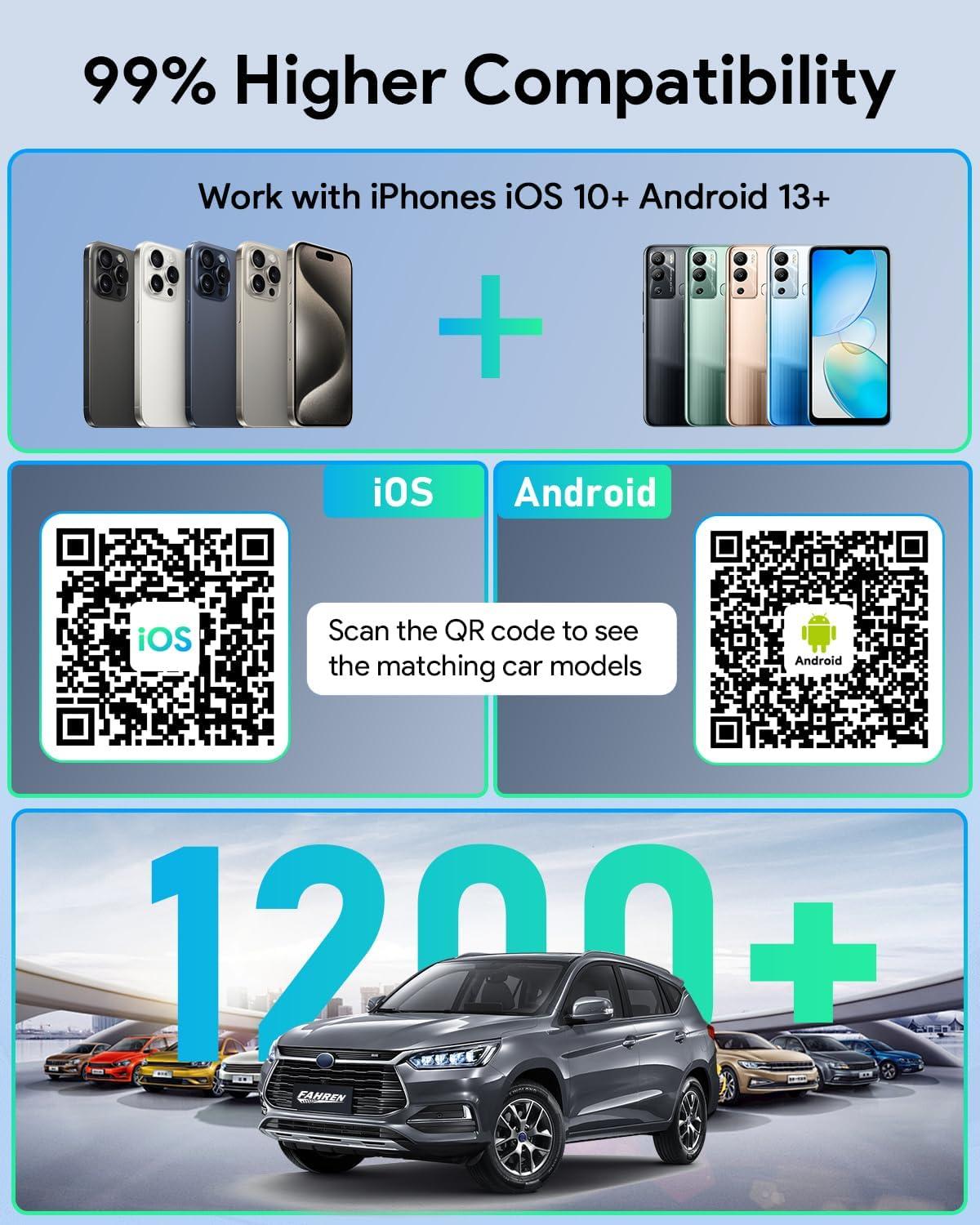 【Universal Compatibility & 3-Year Warranty】: The Bluetooth CarPlay adapter works seamlessly with over 1200 car models and is compatible with iPhones that have upgraded iOS 10 and above, and the Smart Phone that have upgraded Android 11, and Cars that support wired CarPlay or Wired Android Auto. Plus, with a 3-year warranty, you can trust in its reliability. This wireless CarPlay adapter for Apple and Android is your go-to solution for a smarter, more connected driving experience.