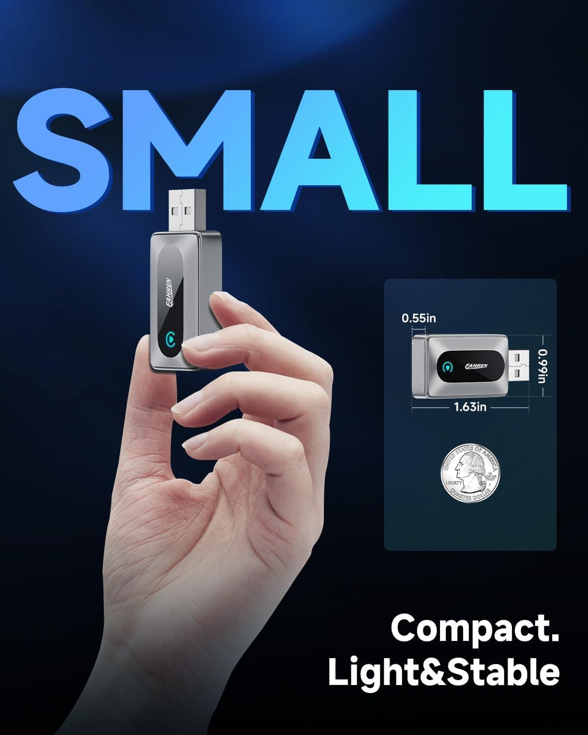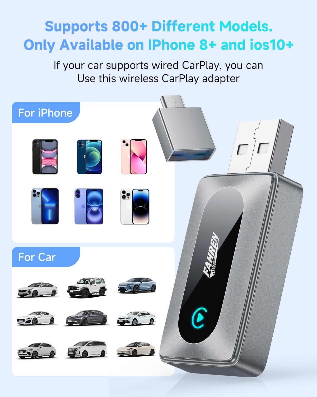 FAHREN Apple CarPlay Wireless Adapter Converts Wired to Mini Bluetooth carplay Adapter, Compatible iOS with USB A & Type C