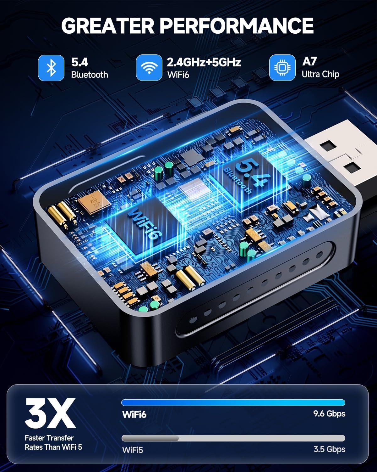 【LIGHTNING-FAST CONNECTION SPEED】Powered by WiFi 6, Bluetooth 5.3, and the A8 Pro chip for ultra-smooth, lag-free performance. Stream, navigate, and call with confidence using this CarPlay wireless adapter.