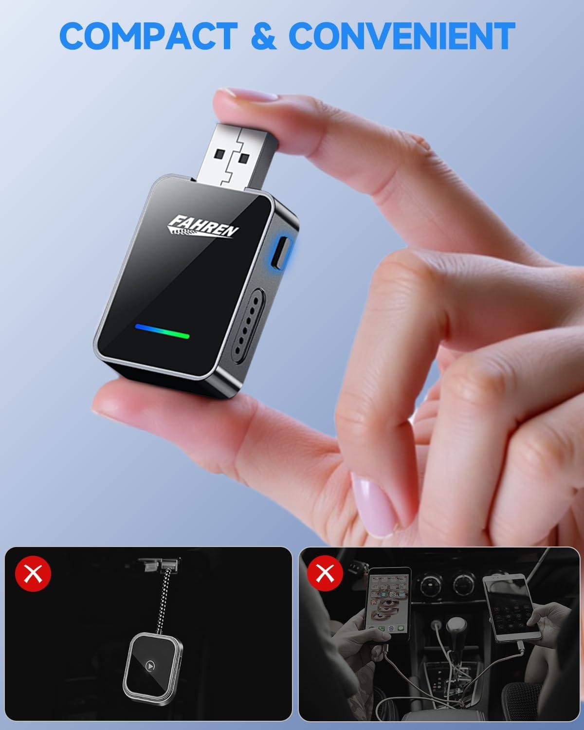 FAHREN CarPlay Wireless Adapter, One-Click Multi-User Switching, Zero-Latency, Wired-to-Wireless Conversion. Android Auto Wireless Adapter, Compatible with iOS 12 and Android 11 Systems, USB A/C Port