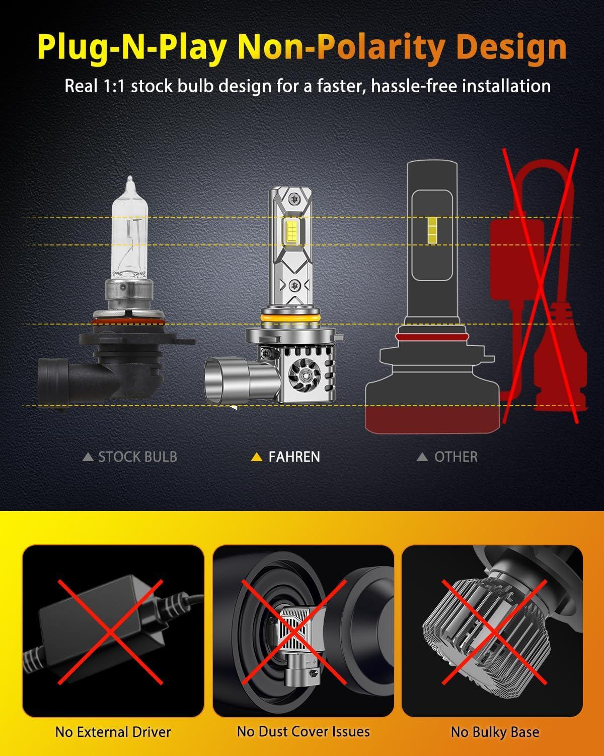 Be the first to review “FAHREN H11/H8/H9 9005/HB3 LED Bulbs Combo, 100,000LM 1200% Brighter 9005 H11 Fog Light Bulbs with 6500K White High-Performance, 1:1 Size Running Board Light, Non-Polarity, Pack of 4(9005/HB3)”