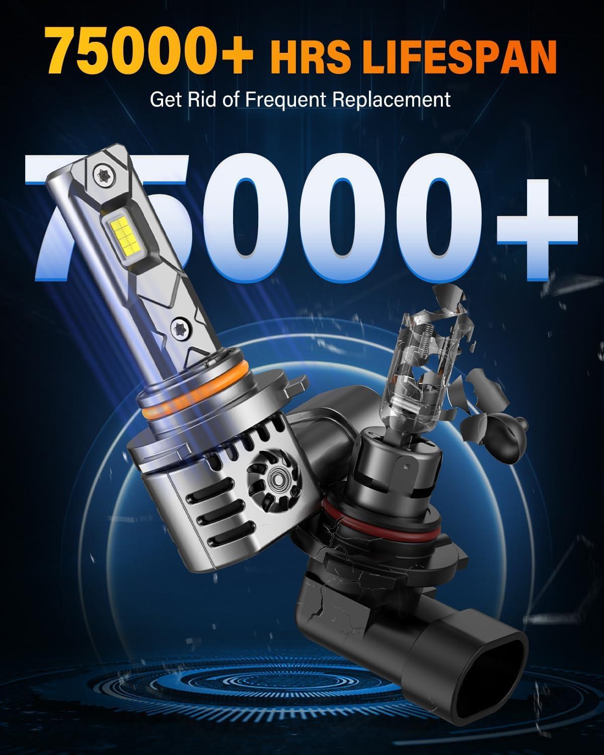 【5 Minutes Easy Installation】- Almost 1:1 mini design same as , the HB3 H9 bulbs perfectly fit into your housing and factory sockets without any modification, just plug and play.