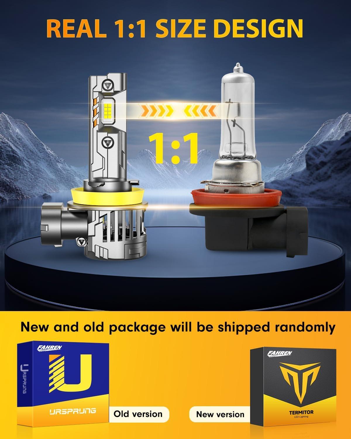 imageFAHREN H11 9005 Light Bulbs Combo 6500K Cool White 120000LM High Brightness 16 CSP Chips 11 Halogen Size IP68 Waterproof Fog Light Long Lifespan Plug and PlayPack of 4