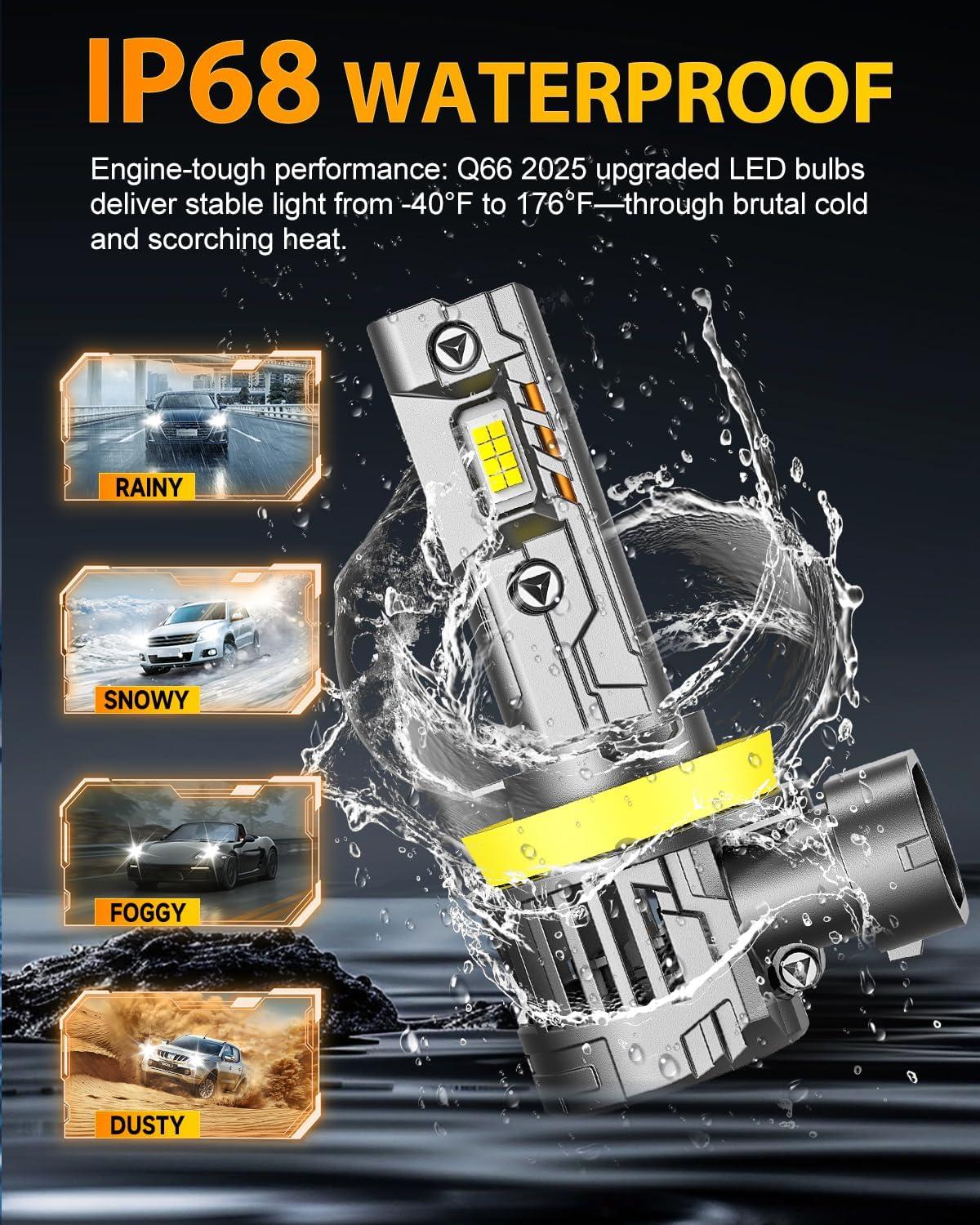Wide Compatibility with 99%+ Vehicles Designed to fit all H11 sockets, these bulbs are perfect for various lighting applications, including low beams, high beams, and fog lights. Featuring a built-in CANBUS system, they ensure error-free operation, eliminating issues like flickering, error codes, or blinding glare for a smooth, safe drive.