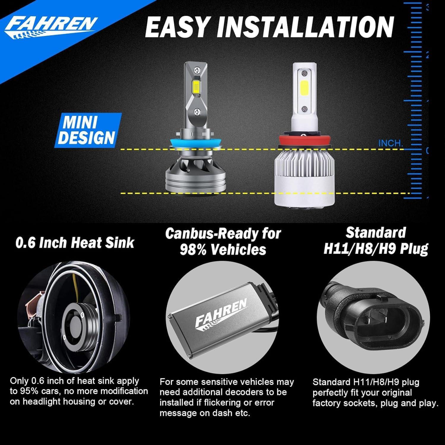 【5 Minutes Easy Installation】- Almost 1:1 mini design same as , the H9 fog bulbs perfectly fit into your housing and factory sockets without any modification, just plug and play.