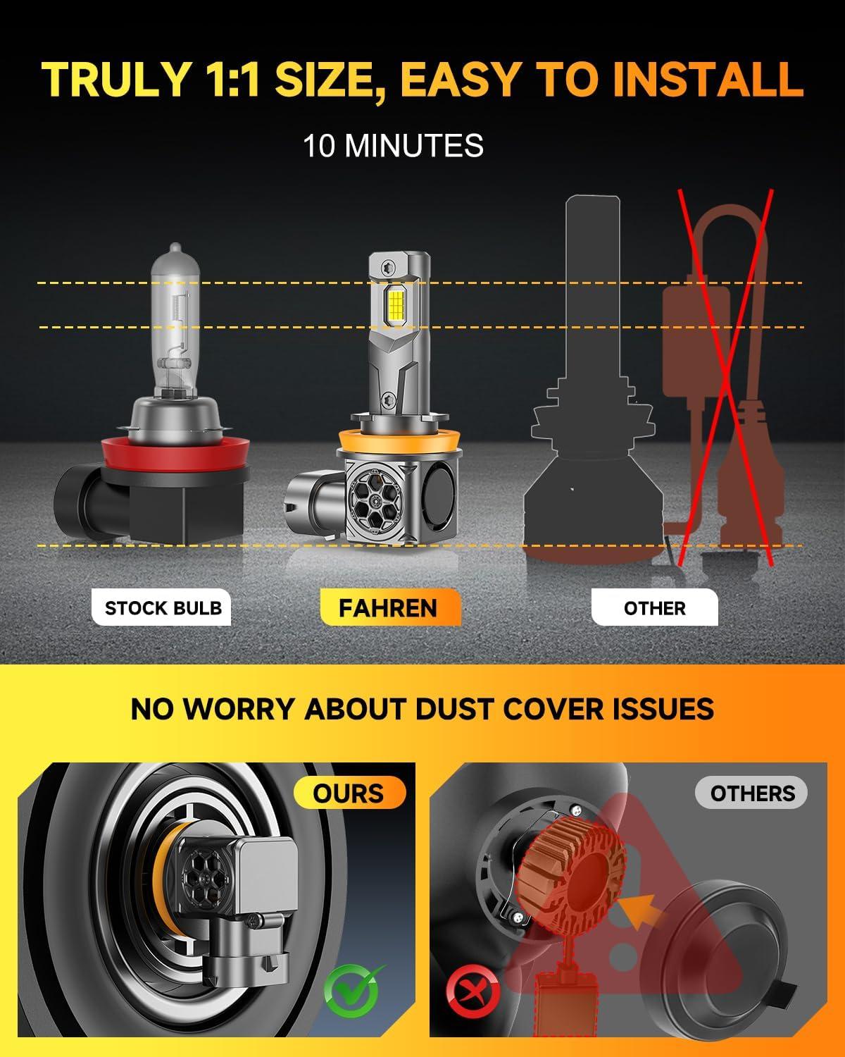 FAHREN Ultra Bright H11 Bulbs, ๐Ÿ”๐ŸŽ,๐ŸŽ๐ŸŽ๐ŸŽ๐‹๐Œ H11/H8/H9 Lights, 13X Brighter High-Focus LED,Safe Night Driving, 6500K Cool White H16 Fog Light,Low Noise, Advanced Cooling,80000Hrs Life,Pack of 2 HID(H4/9003)