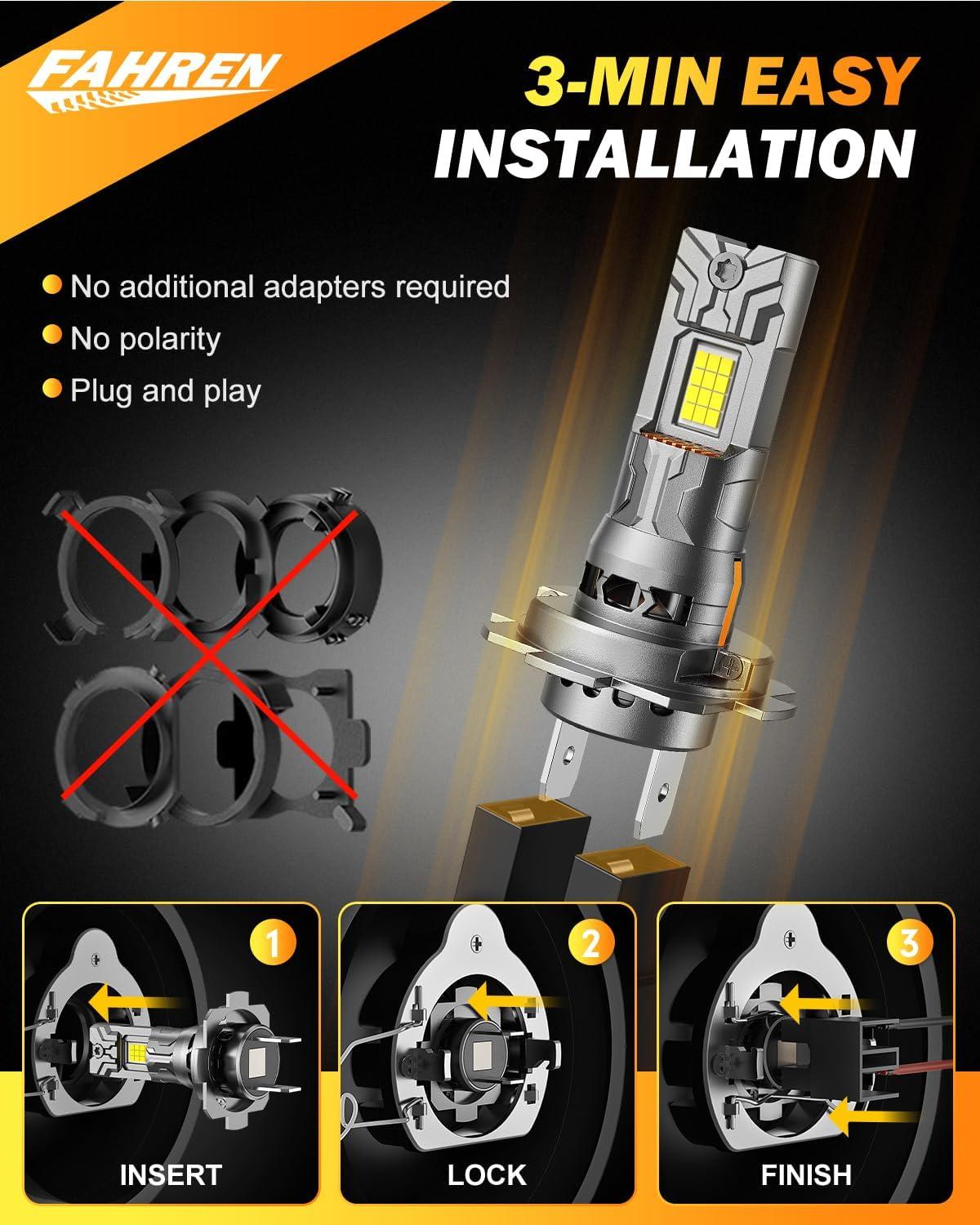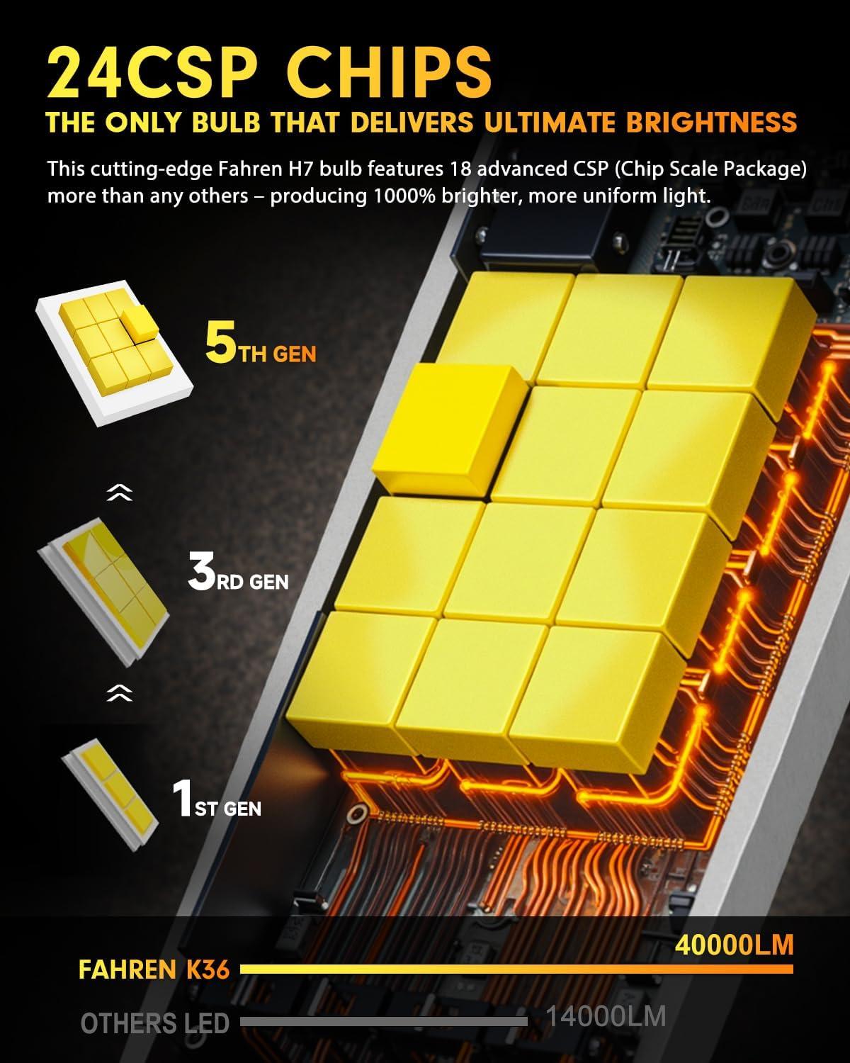 ใUnparalleled brightness and clarityใ110,000 lumens of pure white light deliver revolutionary visibilityโ1300% brighter than standard bulbs. FAHREN h11 9005 LED bulbs combo assembly utilizes the latest chip technology combined with precision beam design to deliver broad, uniform illumination of the road, significantly enhancing nighttime driving safety.